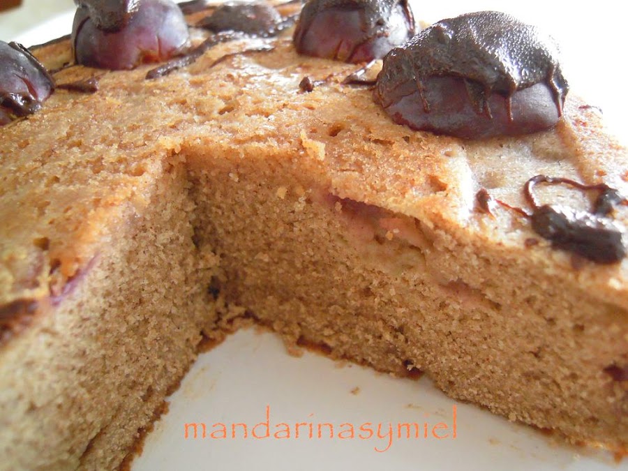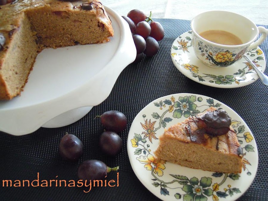 Queda un bizcocho muy jugoso, y con un sabor que nos ha gustado mucho....ese contraste de la uva con el zumo de mandarina y el toque de canela (aunque creo que me he pasado un poquito.....es que me encanta), hacen que sea delicioso y con un aroma exquisito!!!