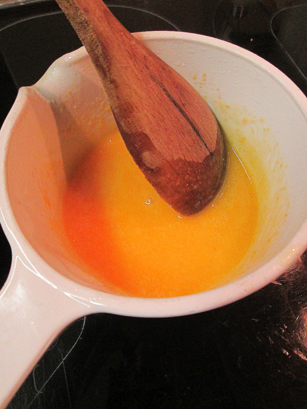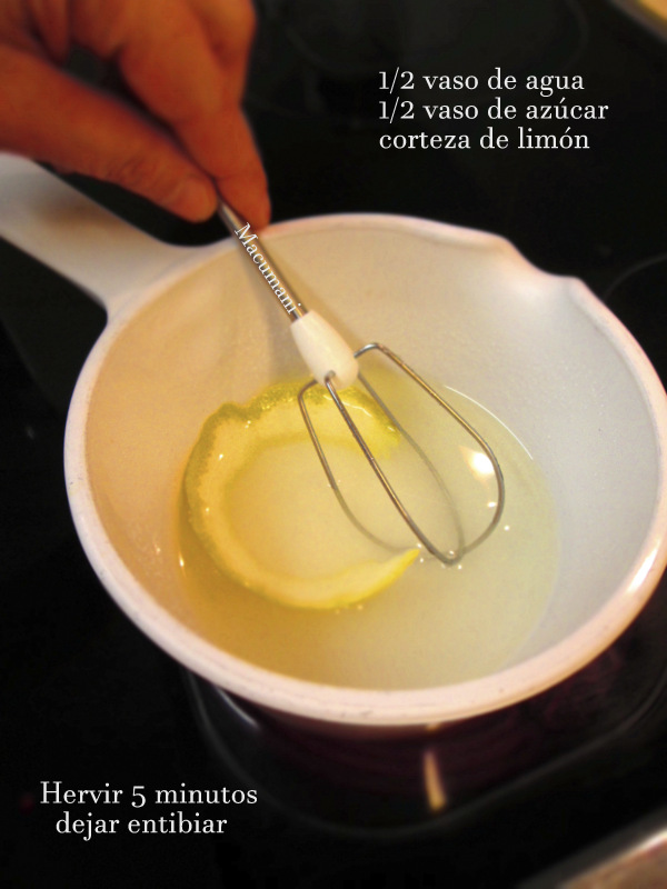 Pon a calentar el agua , el azúcar y la corteza de limón.