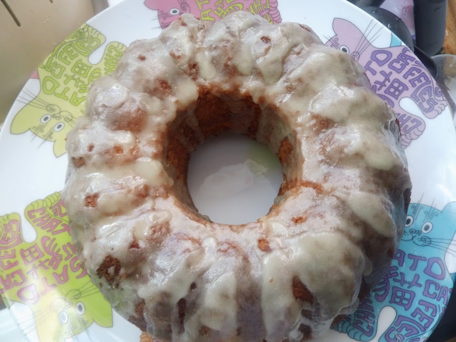 Una vez cocido , comprobar con un pincho o cuchillo metálicos dejar entibiar, y echar la glasa sobre el bizcocho con una cuchara y dejar caer en cascada. Dejar enfriar. Listo para comer.