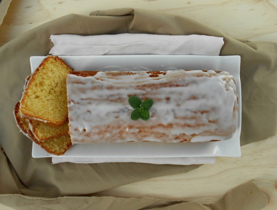 Preparamos un glaseado con el zumo de 1/2 limón y 3 cucharadas de azúcar glas (impalpable) y cubrimos el bizcocho con él. El glaseado debe quedar como una crema espesa, pero eso es agusto del consumidor. Agregando más azúcar o más zumo conseguimos que quede más ligero o más espeso.