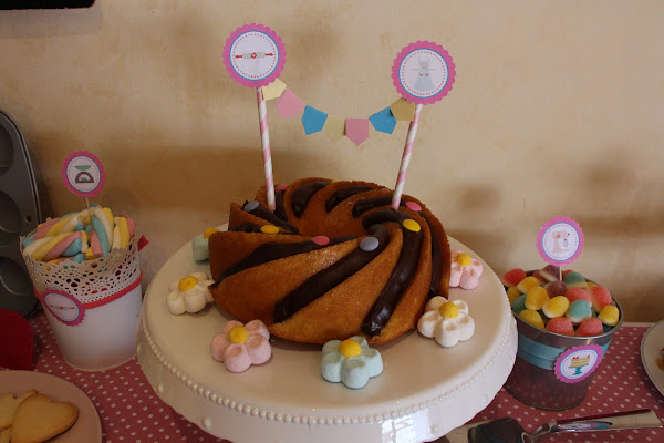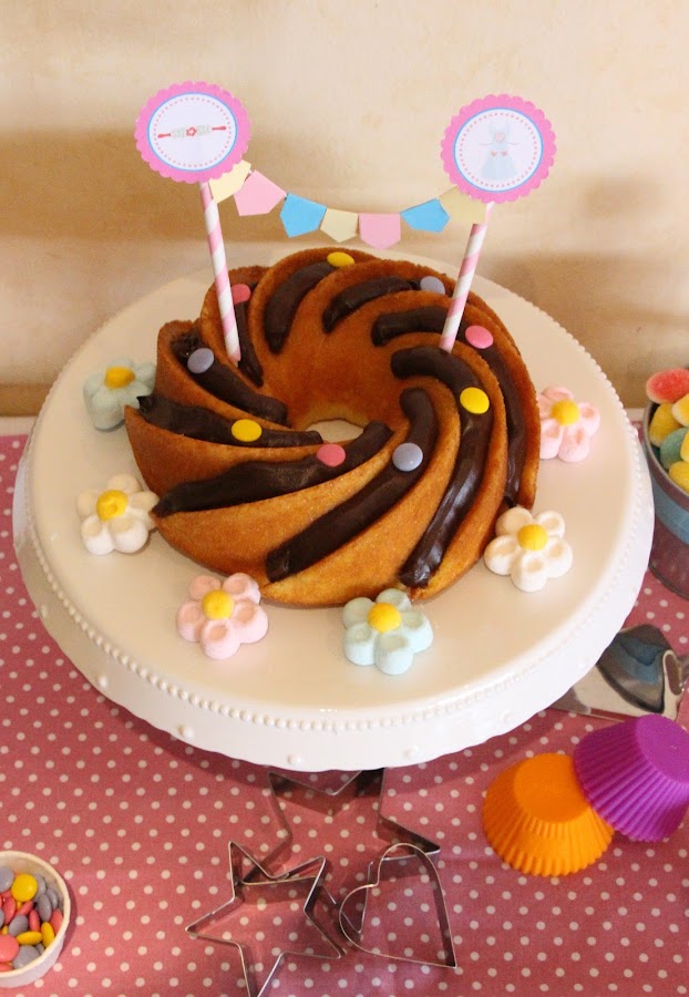 Es el bizcocho que hice en la bakery party. Algunas me comentasteis la buena pinta que tenía el bundt cake... lamento la decepción pero es el clásico bizcocho de yogur, pero sin lugar a dudas el más rico y que más gusta a los niños.