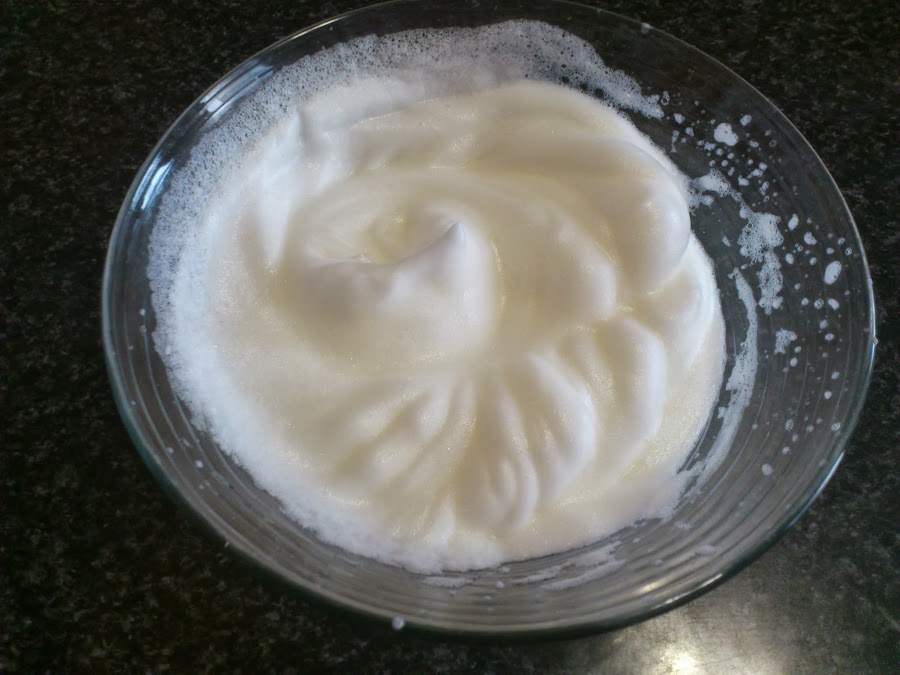 Aquí viene mi truco para que salga súper esponjoso, montamos en un bol a parte, las claras de los 3 huevos y las incorporamos en la mezcla con mucho cuidado con la ayuda de una espátula.