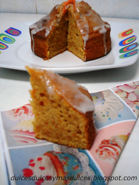 Por último, y una vez frio el bizcocho de zanahoria, vertemos el glaseado encima.