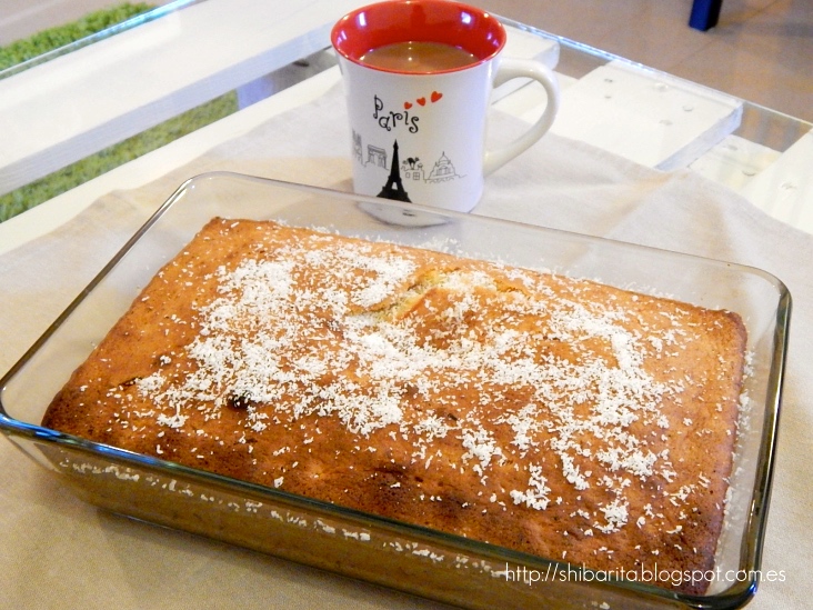 Pasamos la mezcla al molde y lo metemos al horno a 180ºC durante unos 30 min aprox. Como siempre digo, mejor ir vigilando ya que cada horno puede variar un poco y mejor echar un ojo para que no se nos queme. Cuando lo veamos bien subido y dorado, probamos a pinchar con un pincho de cocina y si sale seco lo retiramos del horno.