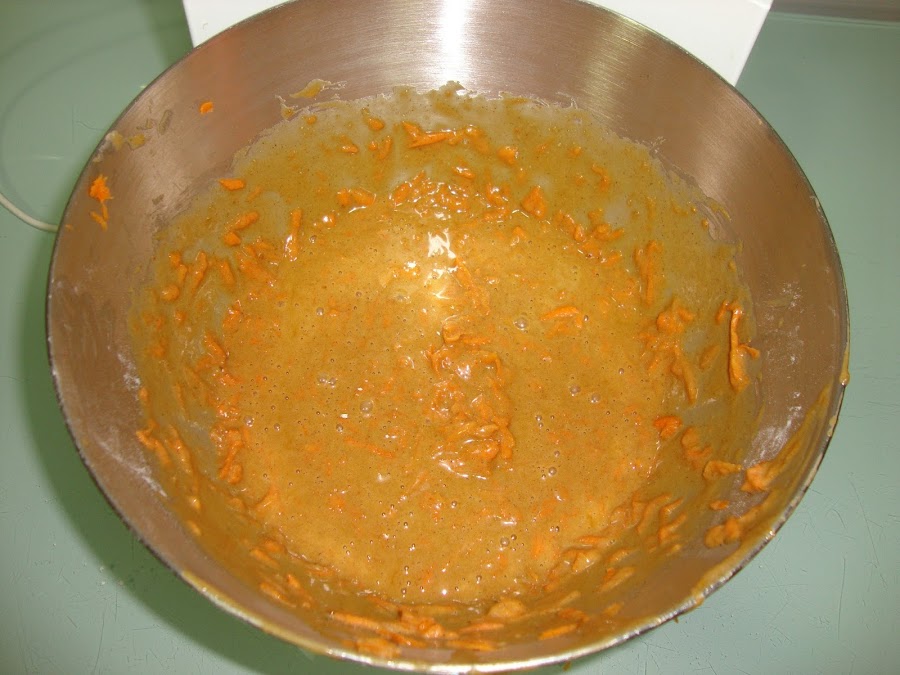 Seguidamente vamos alternando la harina con la zanahoria en unas tres veces.