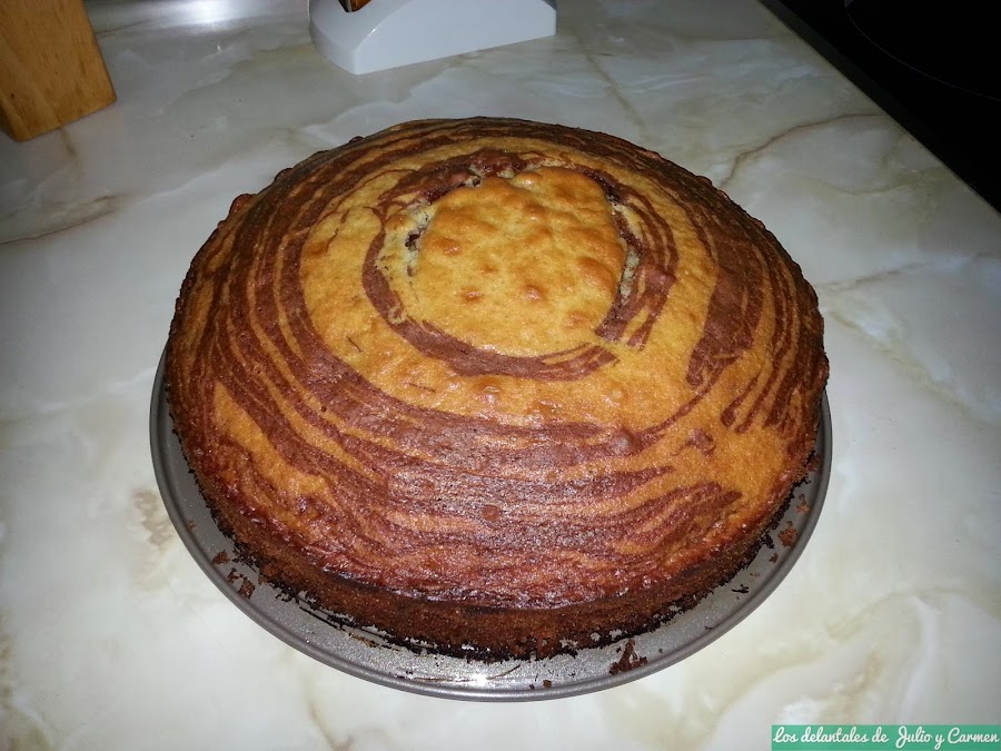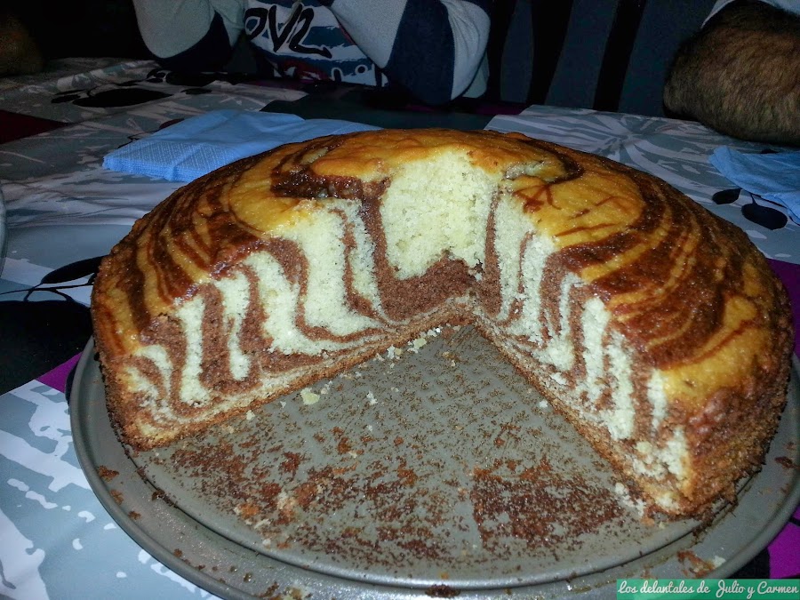La primera vez que lo preparamos fue para recibir a unos tíos de Carmen en casa, a los cuales invitamos para ver el vídeo de la boda. Buscaba algo diferente, aunque como todavía no tenía mucha experiencia, me decanté por un bizcocho, pero no un bizcocho cualquiera. No estaba seguro al 100% de que saliera como lo había visto en fotos, pero el resultado me sorprendió a mi y al resto de invitados, y el sabor... bueniiisimo!