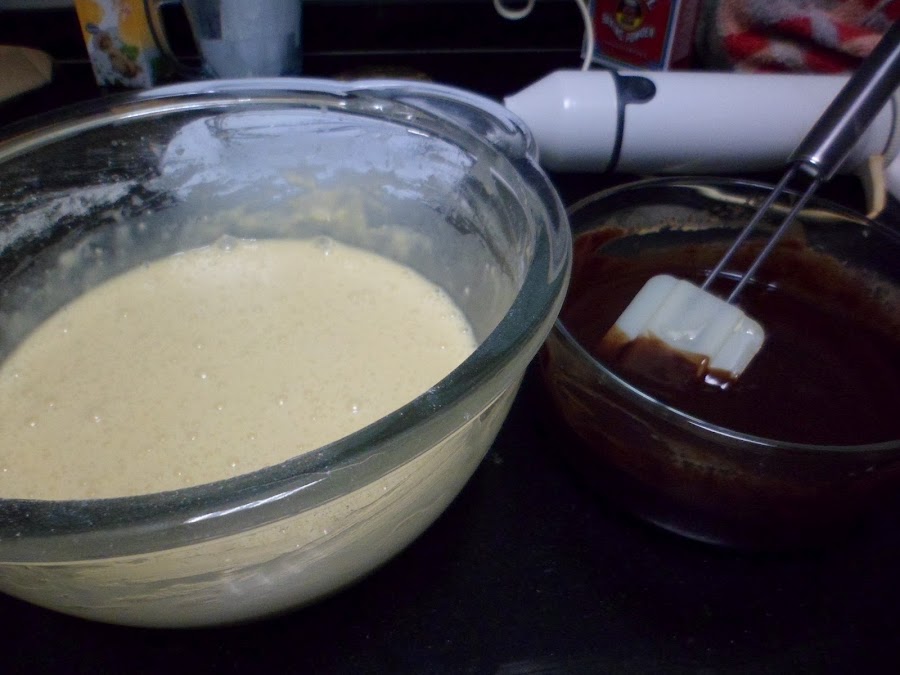 Seguida mente añadimos la harina junto con la levadura, y también la mezcla anterior del chocolate con la mantequilla.