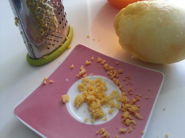1. - Encendemos el horno a 180º. Y en primer lugar lavamos muy bien el limón, lo secamos y con un rallador vamos rallando la corteza, sólo la parte amarilla.