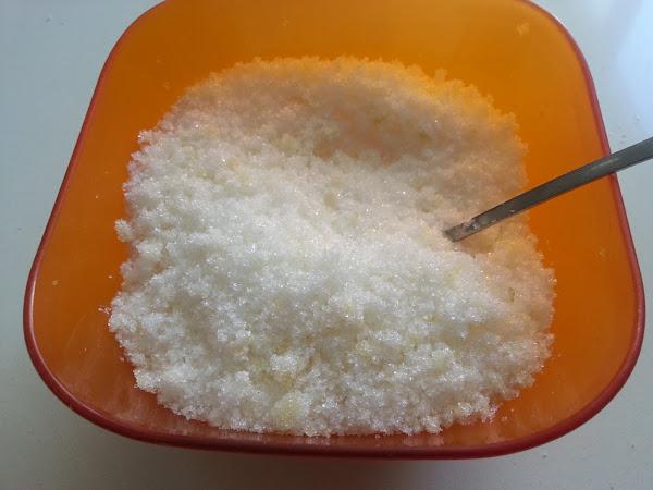2. - Mezclamos bien el azúcar con la ralladura de limón, para que el azúcar absorba olores y color.