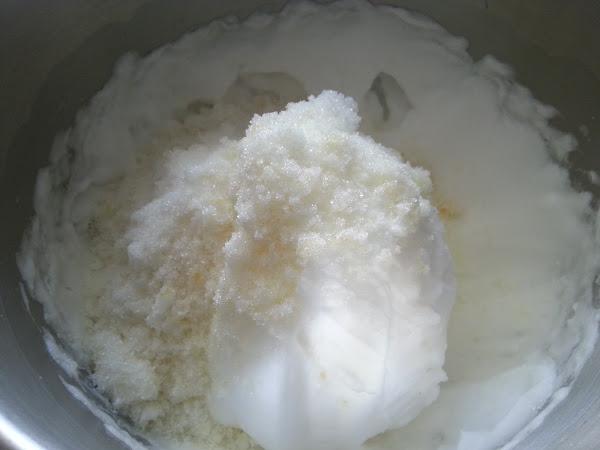 4. - Le añadimos el azúcar y lo removemos con una espátula, con cuidado, para que no se nos baje.