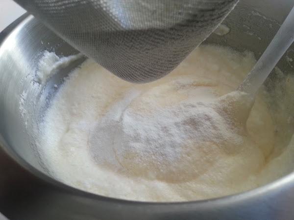 6. - Y por último, tamizamos la harina junto con la levadura, con un colador, y volvemos a remover.