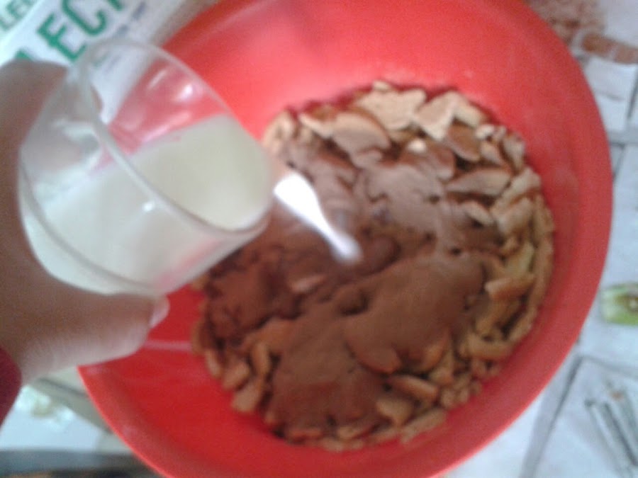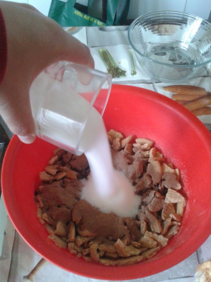 A continuacion echamos el vaso de neskuik (o colacao)