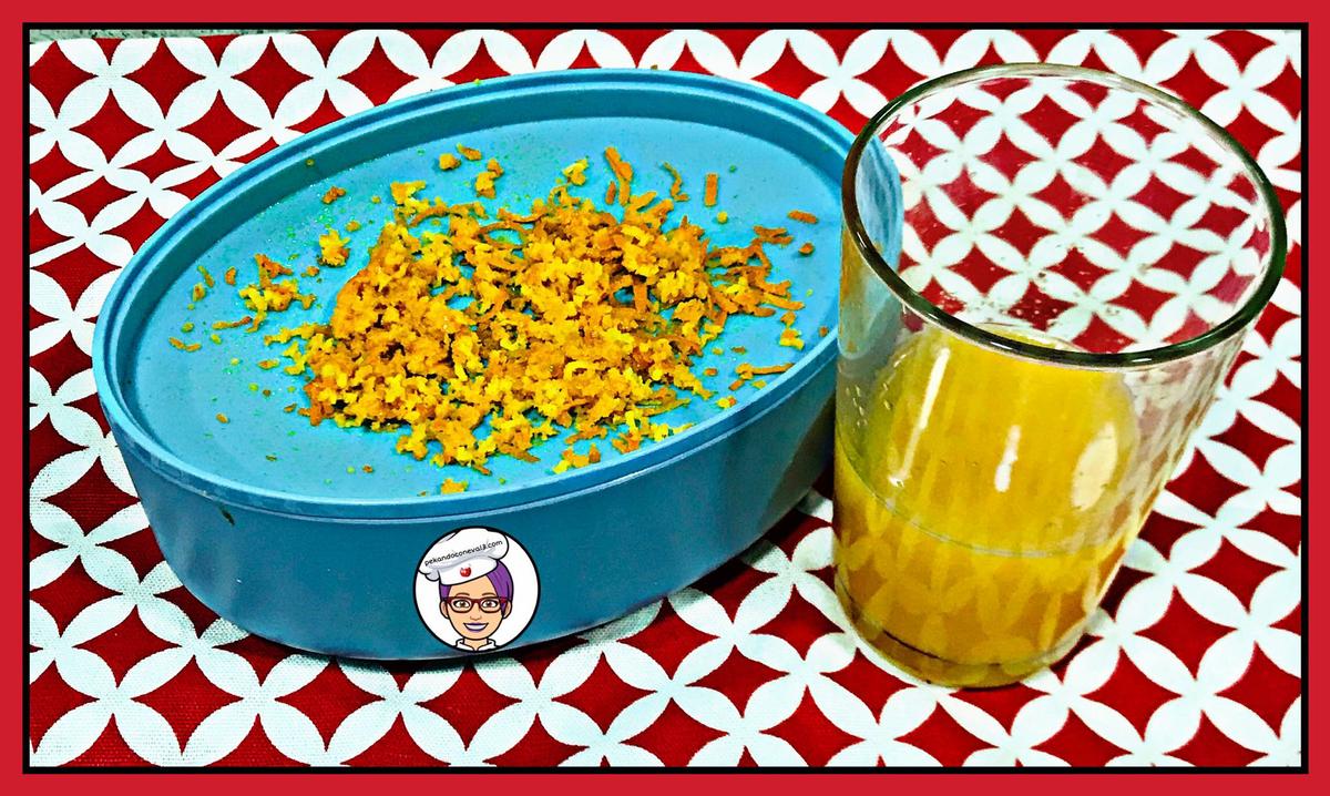 He rayado la piel de la naranja y la he exprimido y reservo para cuando la necesite tenerla lista.