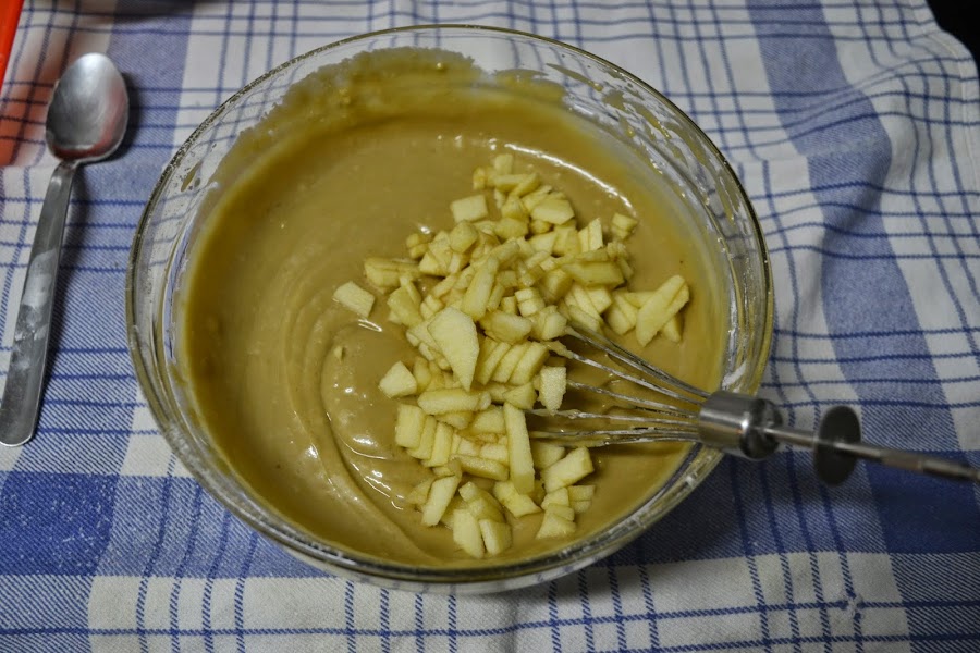 Incorpora la manzana cortada en cuadritos y mezcla con una espátula.