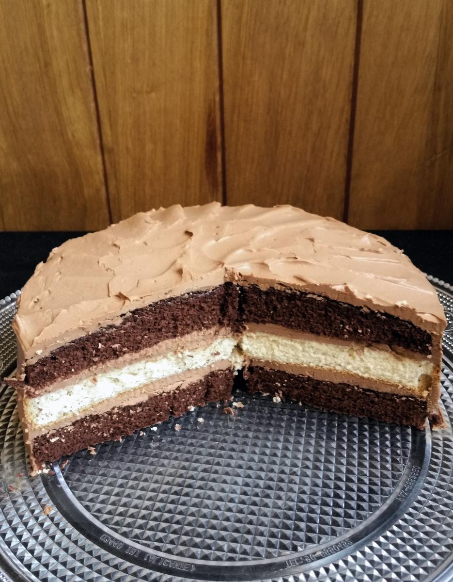 Yo hice uno normal y uno de chocolate y alterné las capas y encuentro que quedó precioso, muy vistoso, no crees?