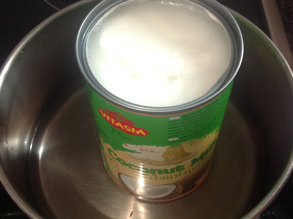 Si vieras que la leche de coco estuviera solidificada, calienta en un cazo con un poco de agua, lo justo para que se diluya ¡NO LA CALIENTES MUCHO!