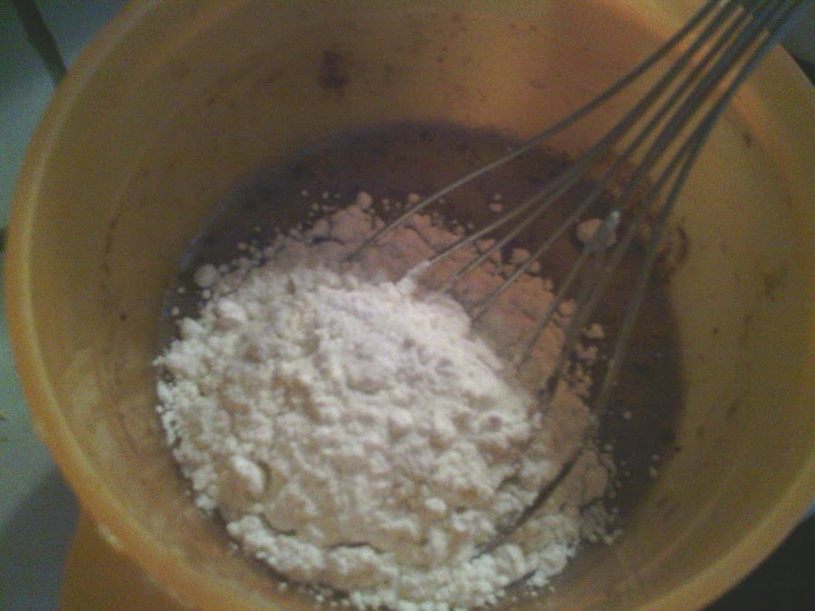 3. Añadir la harina y la levadura y batir bien hasta que quede una mezcla uniforme.