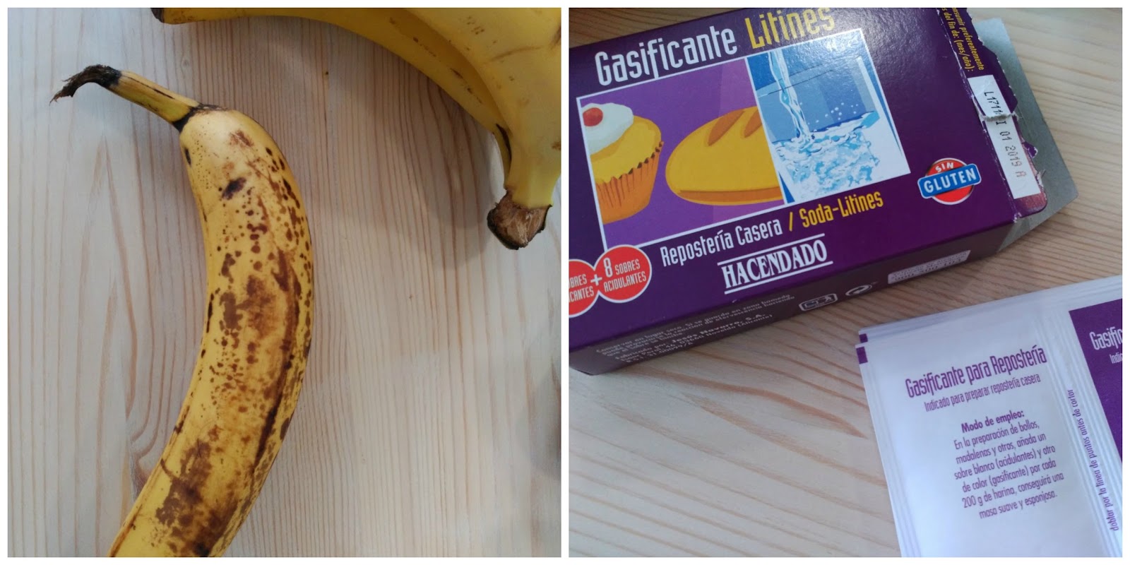 Para el bizcocho he aprovechado un plátano maduro que nadie se atrevía comerse y es una pena por que cuándo más maduro está,más propiedades beneficiosas tiene.El plátano maduro tiene más dulzor,así que podemos disminuir la cantidad de azúcar en éste caso edulcorante.