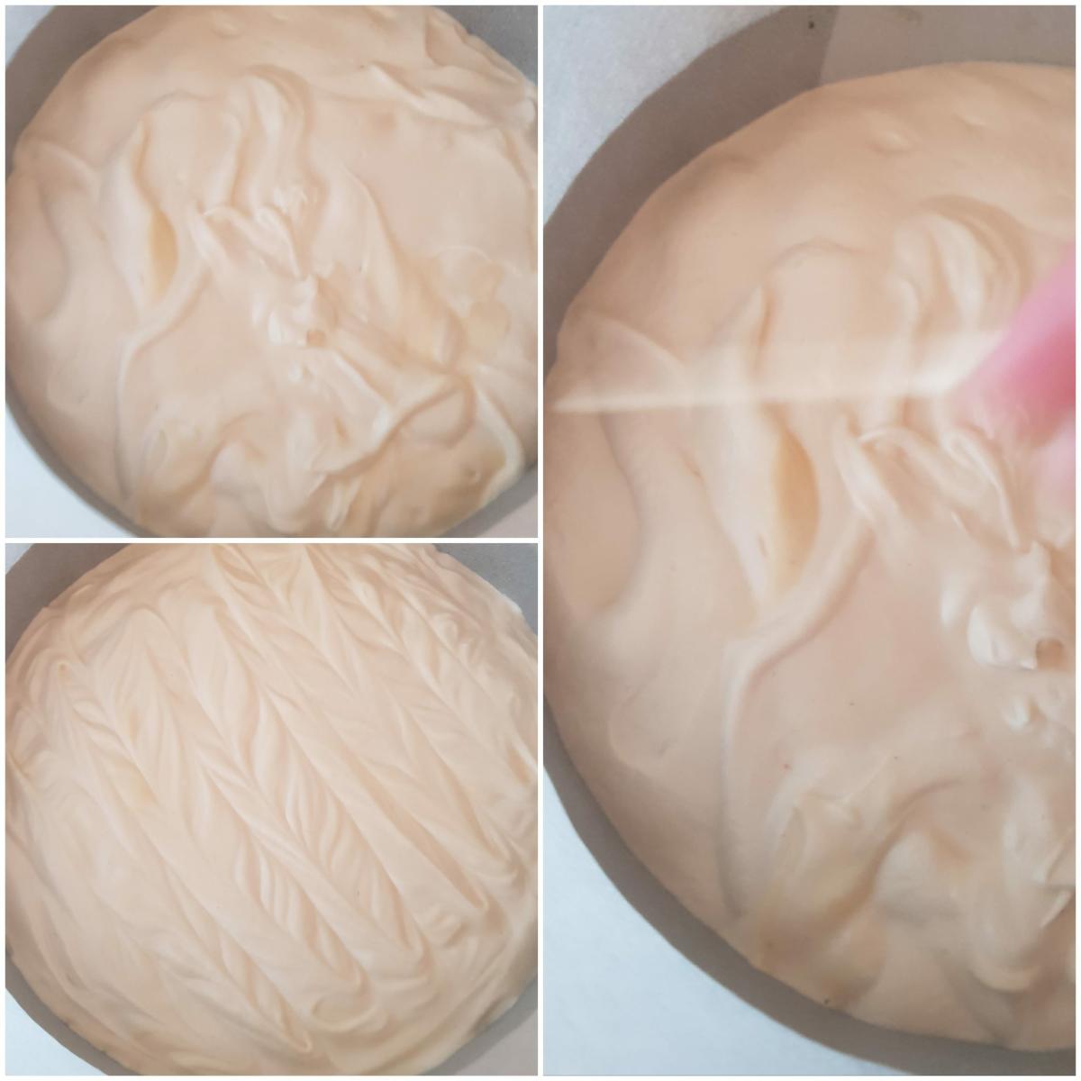 Verter la mezcla en molde En un molde bien engrasado, o como yo, que le he puesto papel de horno por debajo y por los lados. Una vez vertemos la masa, le damos unos golpecitos al molde para que la masa asiente y no se queden burbujas en su interior, y con la ayuda de un palillo, alisamos por arriba.