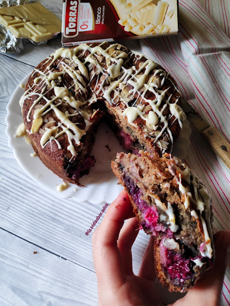 Los frutos rojos del bizcocho hace que quede un miga jugosita y deliciosa.