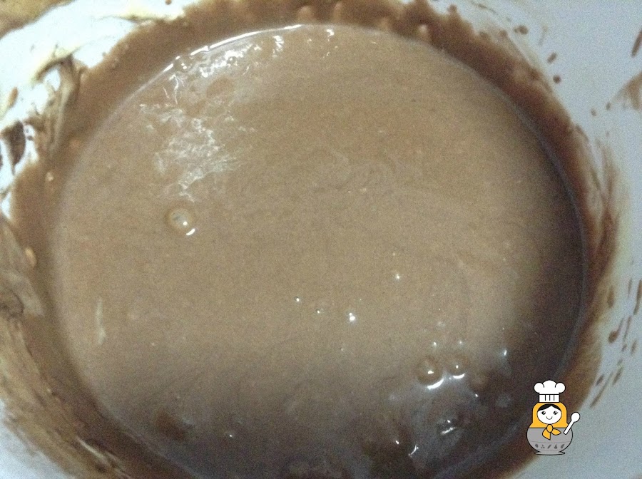 En este segundo recipiente echamos la cucharada de cacao y mezclamos todo bien.