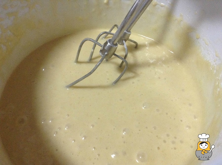En un bol, ponemos los huevos con el azúcar, echamos la mantequilla a temperatura ambiente y la leche batiendo después de añadir cada ingrediente. Por último vertemos poco a poco la harina tamizada con la levadura. Cuando tengamos una masa bastante líquida pero homogénea, la dividimos y ponemos la mitad en otro bol.