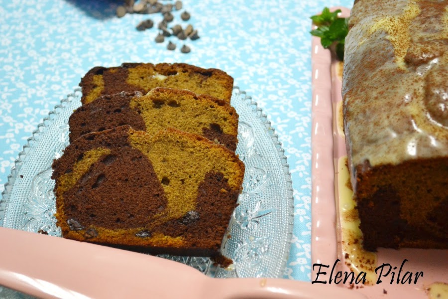 Bizcocho marmolado de mocha con ganaché de chocolate blanco: