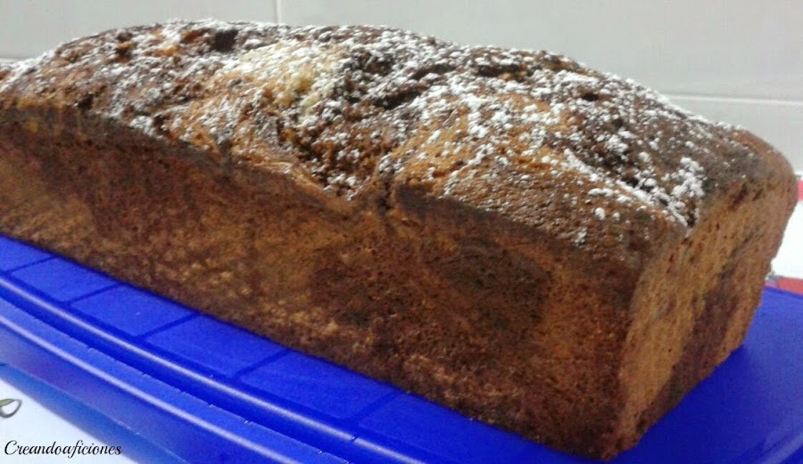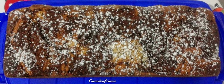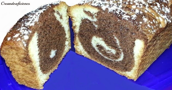 Engrasamos y enharinamos un molde y a continuación echar las dos masas de forma alterna para que al hornearse se combinen los dos colores. También pueden mezclarse ligeramente una vez vertidas en el molde.