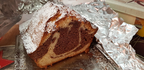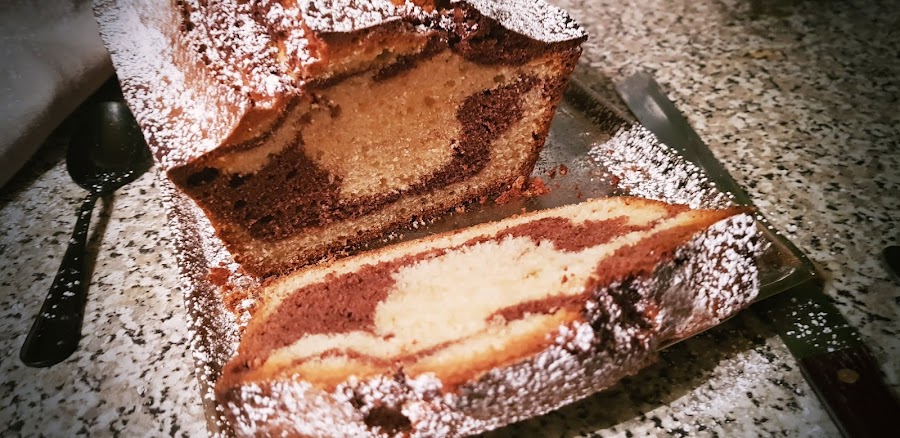 Un bizcocho que parece mágico con sus remolinos de chocolate que varían en cada corte.