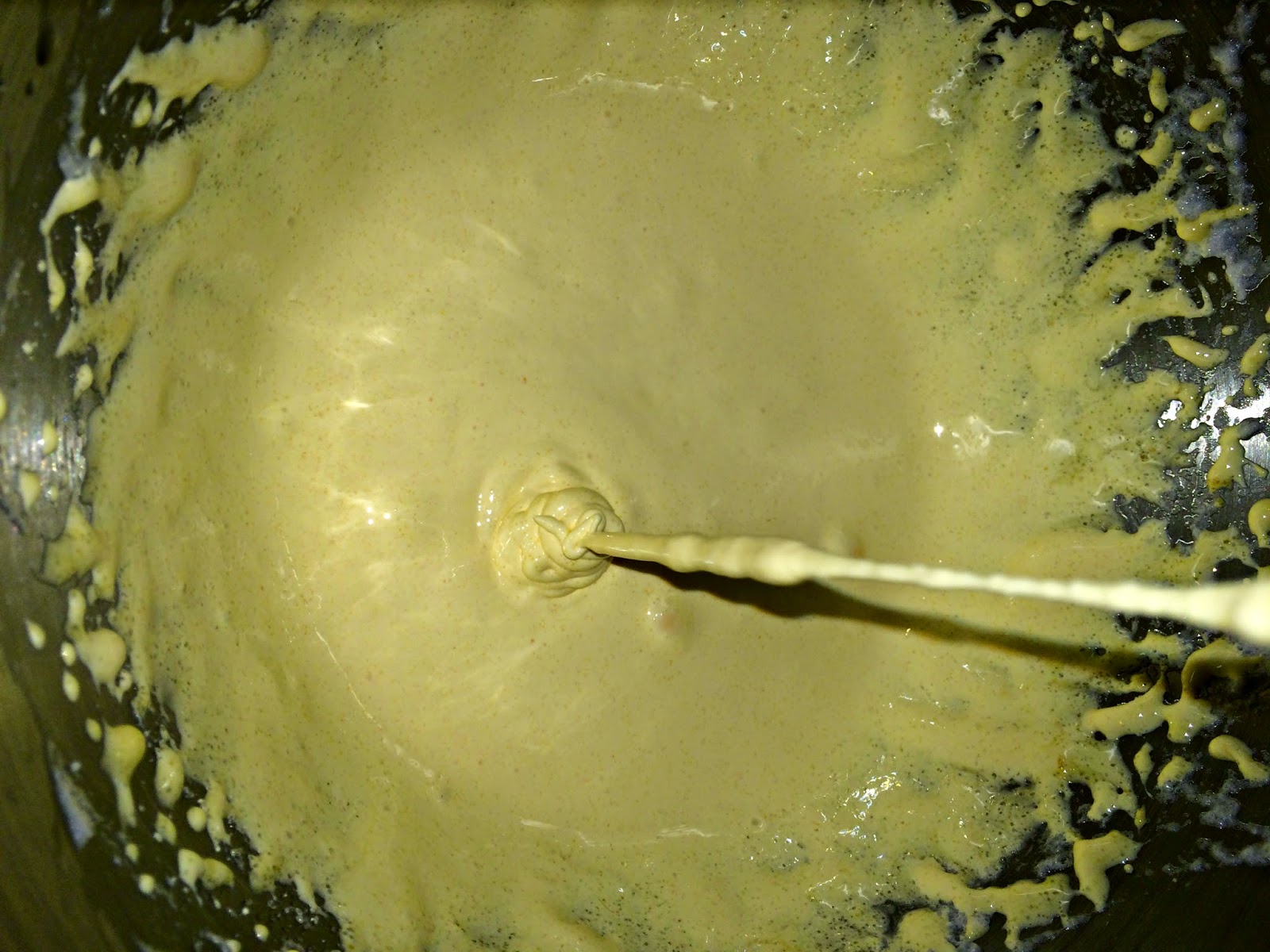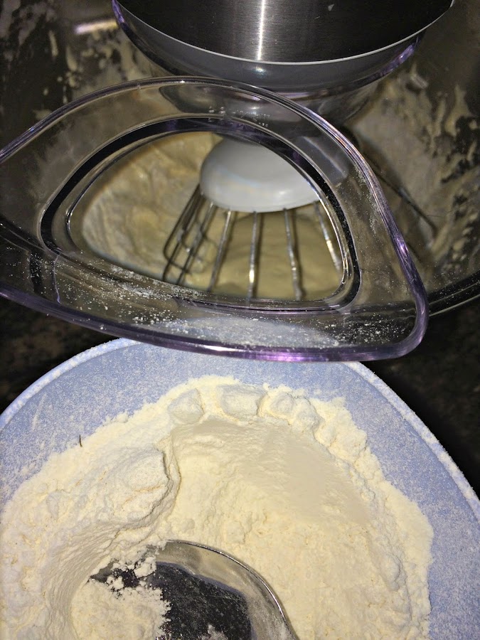 Cuando aumente su volumen y adquiera ese tono blanquecino vamos a añadir la harina que habremos tamizado con la levadura.
