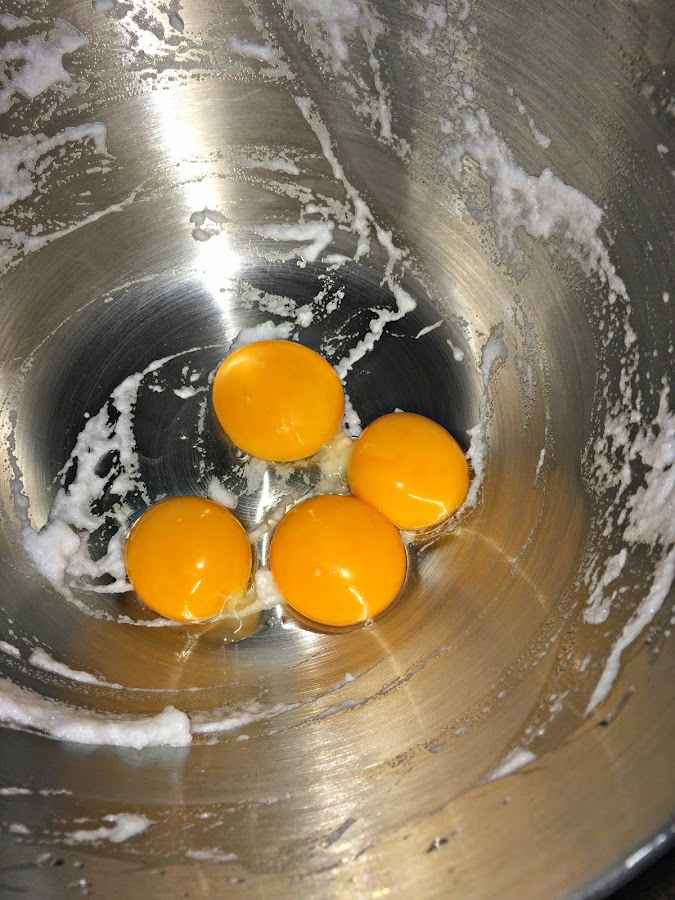 Las ponemos en un bol y las reservamos. Ahora vamos a batir las yemas con el azúcar hasta que blanqueen, durante unos 6-8 minutos.
