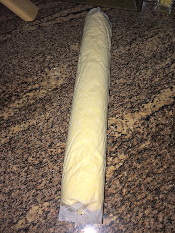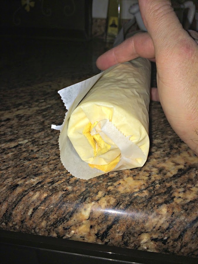 Cuando ya esté a temperatura ambiente lo desenrollamos, lo rellenamos y lo volvemos a enrollar sin el papel y ya mantendrá su forma.