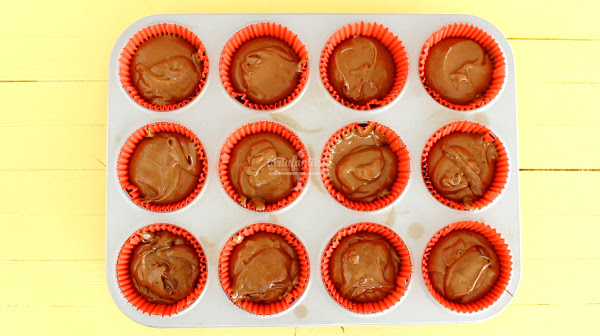 Hornearemos de igual forma que los cupcakes de vainilla, aunque esta versión crece un poco más en el horno por lo que pongo un poco menos de masa en laS cápsulas, en vez de una medida y media con el accesorio de helados pongo sólo una medida.