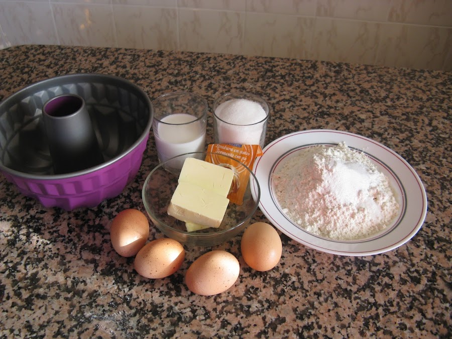 Pintamos el molde con aceite, también se puede echarharina encima y darle la vuelta para quitar el exceso. Elegí esta forma de molde porque es la más usada allí, al menos es el recuerdo que tengo de aquellos bizcochos súper buenos.