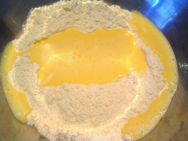 Mezclamos la harina, la levadura y un poco de sal y pimienta.