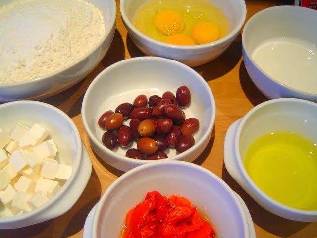 Añadimos el queso, las aceitunas y los pimientos escurridos.