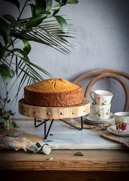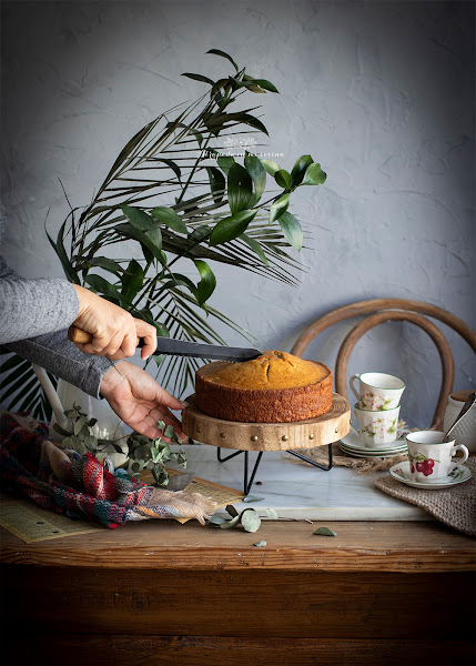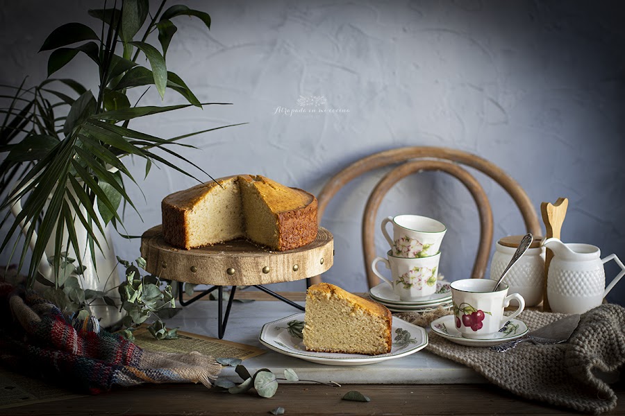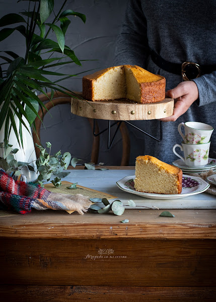 Horneamos de 50 a 60 minutos o un poco más, dependiendo de vuestro horno. Tarda un poco más en cuajar al no llevar huevos. Comprobaremos que está listo cuando al pinchar con una brocheta en el centro del bizcocho esta sale limpia. Una vez horneado, sacamos del horno y dejamos 10 minutos dentro del molde. Después desmoldamos y dejamos enfriar totalmente sobre una rejilla.