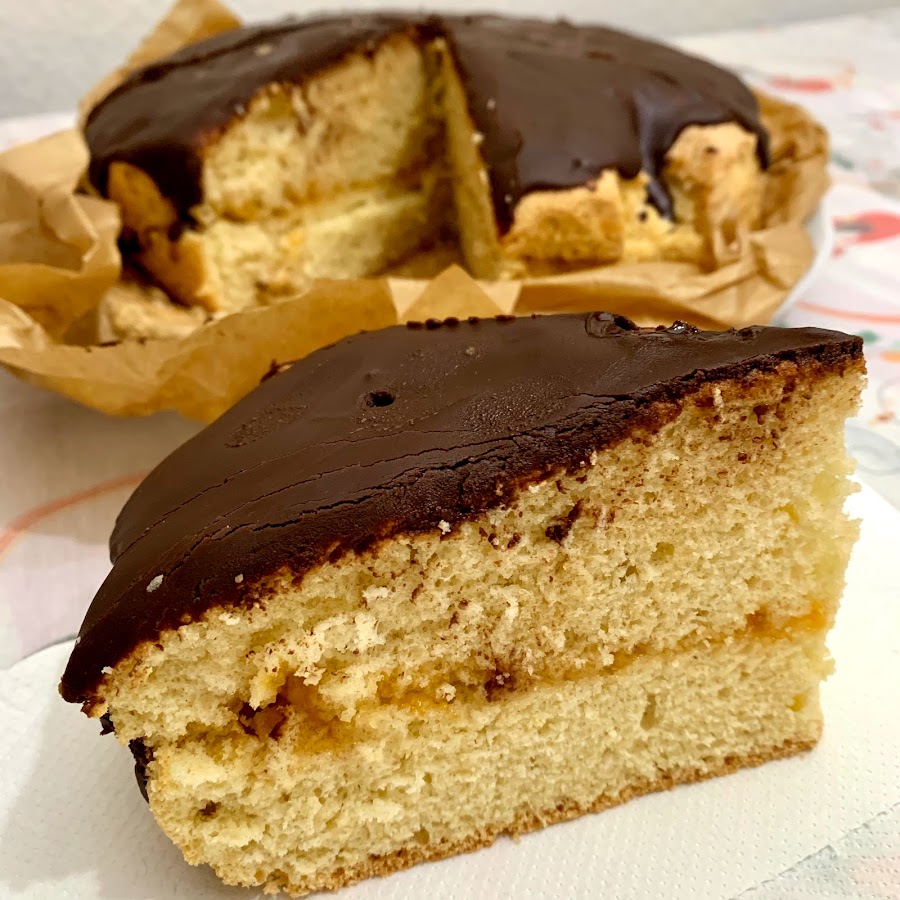 Podemos servirlo tal cual con un poco de azúcar glass espolvoreado o bien decorarlo al gusto. En mi caso, lo corté por la mitad y lo unté con mermelada de albaricoque y luego derretí chocolate fondant con mantequilla y decoré por encima. Buenísimo!