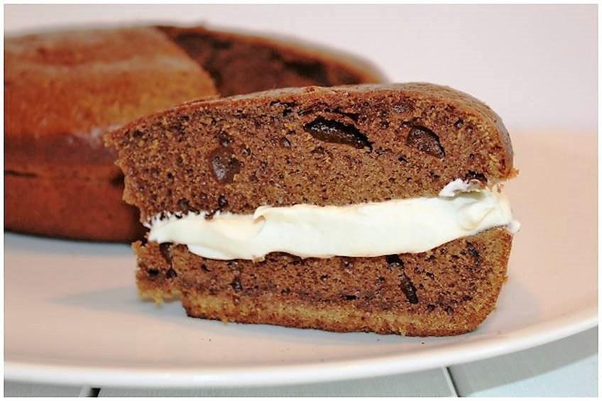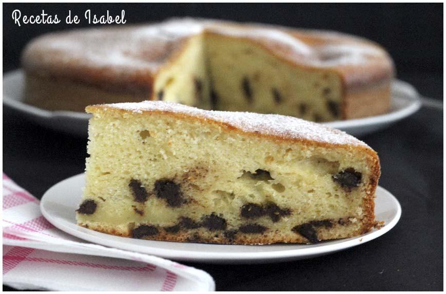 Bizcocho casero de manzana con chocolate. El preparado de este bizcocho tiene manzanas molidas, y luego he añadido gotas de chocolate. Esta mezcla de sabores ha dado como resultado un bizcocho con un sabor insuperable.
