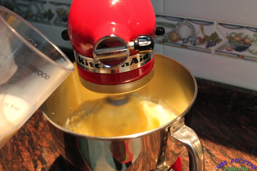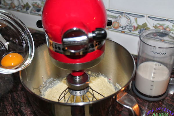 Seguidamente añadiremos los huevos uno a uno, hasta que no se mezcle bien el uno no añadiremos el siguiente, una vez terminados de añadir los huevos añadiremos la leche y seguiremos mezclando,