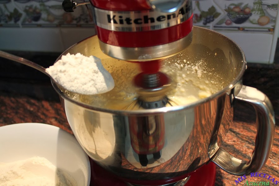 Cuando este todo bien mezclado añadiremos la cucharada sopera de agua de azahar y a continuación toca añadir la harina que la pondremos poco a poco hasta gastarla toda y se quede bien mezclada.