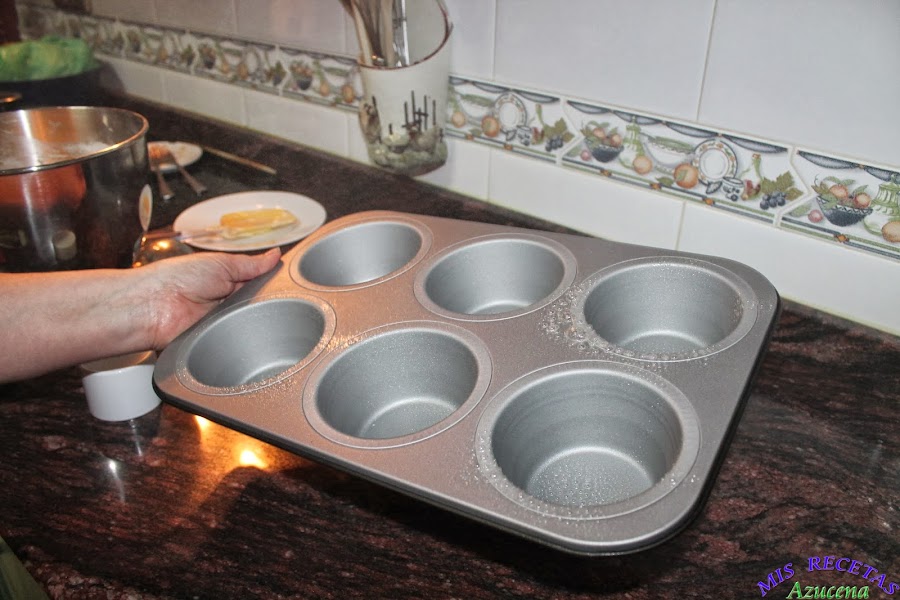 Para esta receta necesitaremos una bandeja de horneado de bizcochos de seis unidades de un diámetro de 10x5.