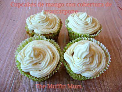Y en mi blog tengo varias recetas de cupcakes con frutas (para ver si consigo engañar a mis hijos con alguno) y uno de mis preferidos son estos Cupcakes de mango con mascarpone que quedan deliciosos.