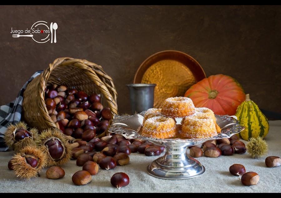No es fácil llegar al corazón de una castaña pero cuando se llega te enamora. Si sois de los que os gusta ir al campo a por castañas sabréis que para alcanzar el trofeo primero hay que superar una corteza de pinchos, luego una capa durísima y, finalmente, una tercera capa consistente en una membrana que hay que eliminar porque amarga. Todo lo bueno se hace valer. Pero lamentablemente la castaña es un fruto muy de temporada. Nos acordamos de ella cuando nos aproximamos a la fiesta de Todos los Santos. Y nos la comemos casi siempre acompañada de dos fieles escuderos: el boniato y los panellets. Pasadas estas fechas, nuestro enamoramiento disminuye, se desvanece. Es un error porque con las castañas se pueden preparar dulces, o podemos utilizarlas como guarnición en platos de carne. Aprovechando que aún teníamos Crema de castañas hicimos estos bizcochos individuales. De pecado mortal.