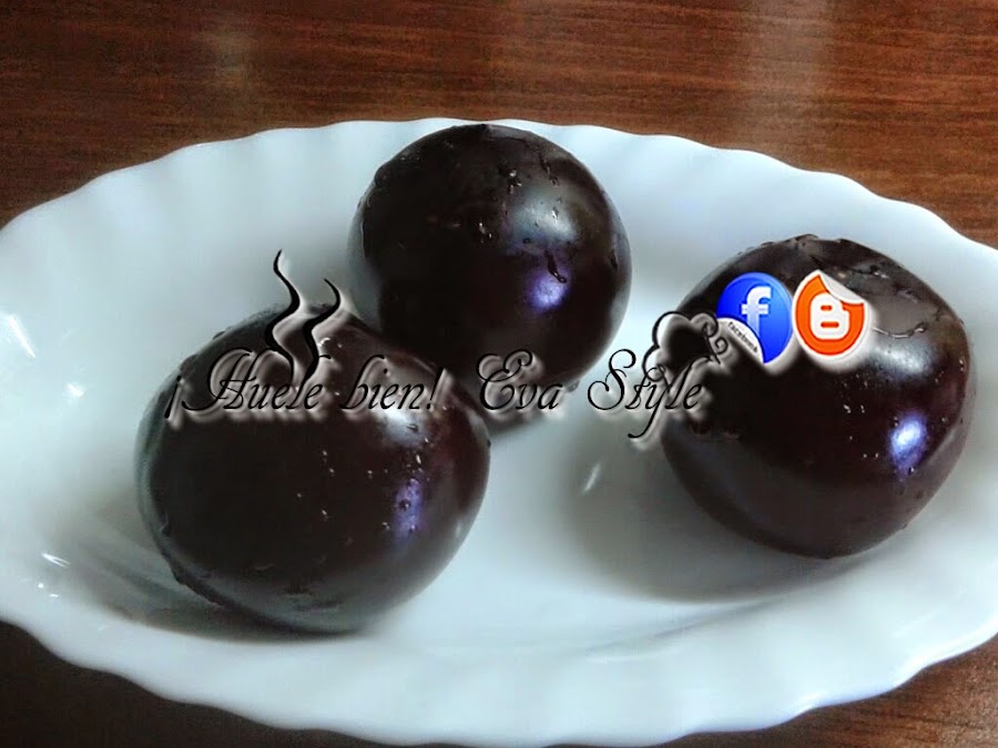 1.- Calentamos agua en un cazo, lo retiramos el fuego y escaldamos las ciruelas en él.