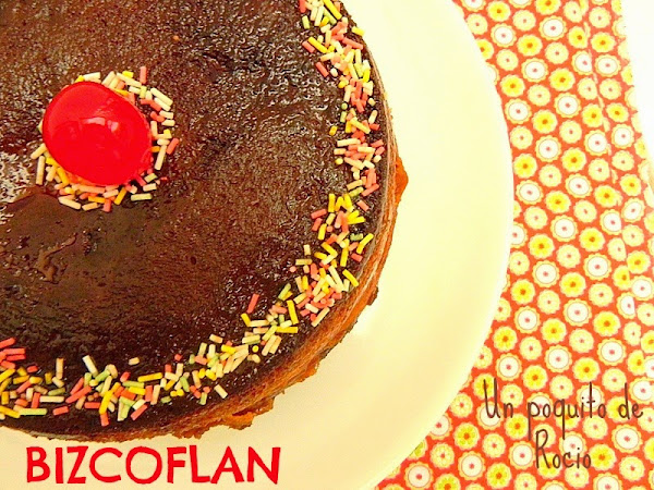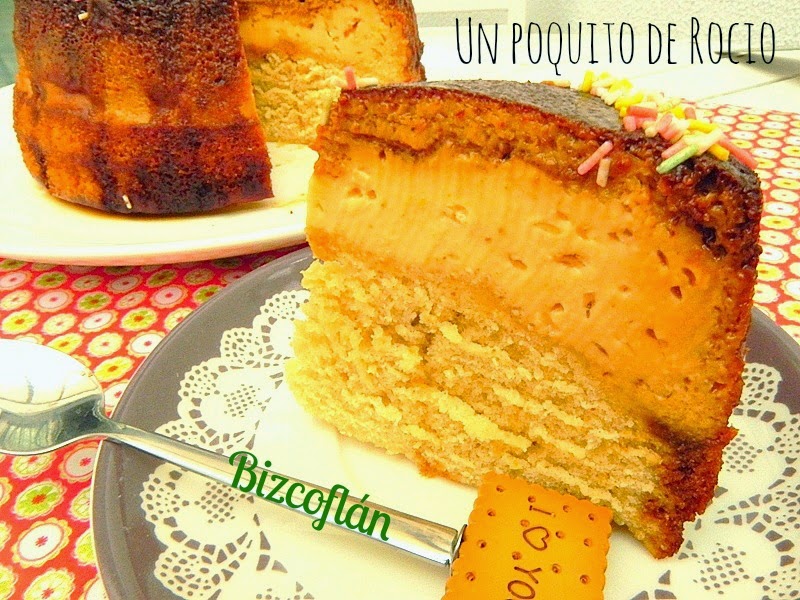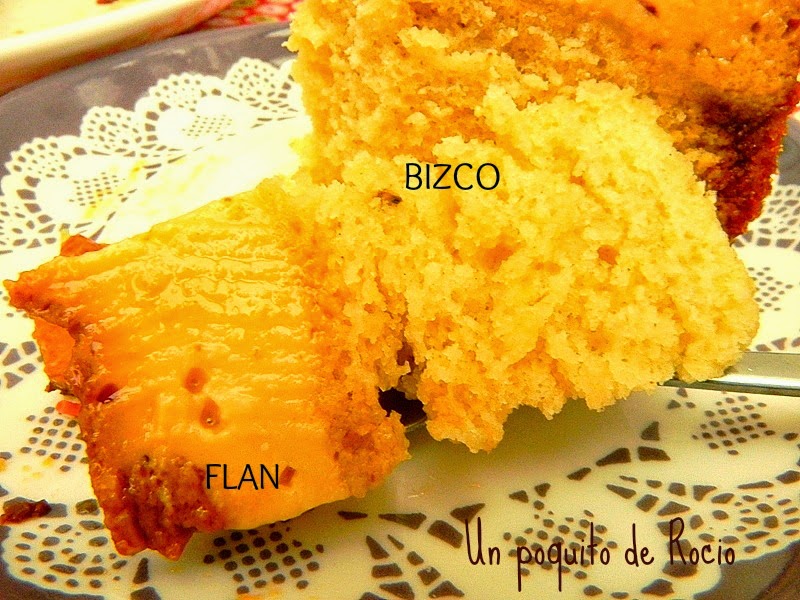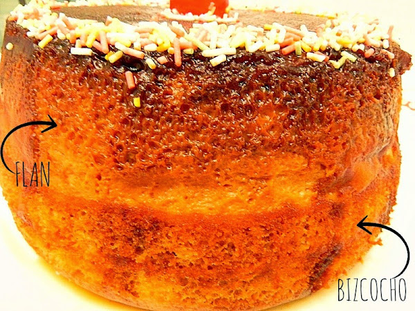 Un par de horas de nevera después, desmoldamos y veremos bien diferenciados un flan y un bizcocho, quedando éste último abajo. Decoramos al gusto.