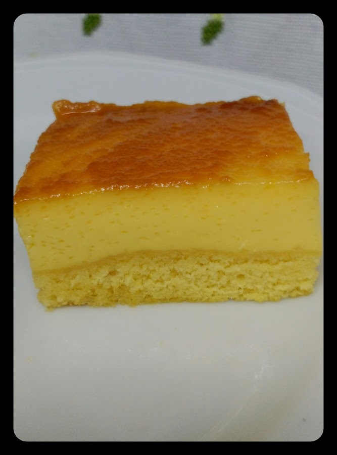 3.- Bate los ingredientes para el bizcocho y los viertes con cuidado sobre la mezcla del flan.