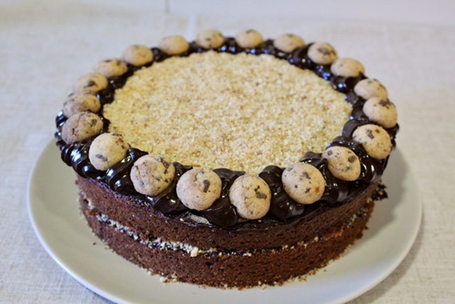 Bizcocho de chocolate con ganaché de chocolate y galleta (sin lactosa)