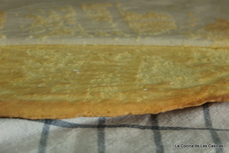 Enrolla en caliente en el paño de cocina para que coja la forma. Va a ser un básico en mi cocina. Yo he hecho una plancha, puedes hacerlo en un molde redondo para tarta y rellenar. Tú mism@.