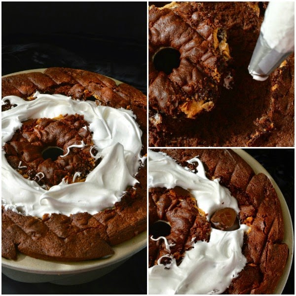 BUNDT CAKE DE CHOCOLATE RELLENO DE MERENGUE Y RABITOS ROYALE